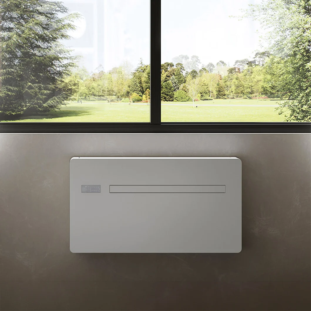 Met slechts twee muurgaten en een diepte van amper 16,5 cm is de monoblock de meest discrete airco beschikbaar. Volledig metalen behuizing, vrijwel onzichtbaar en perfect voor elk interieur.